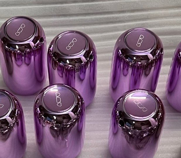 The polished metal base is precision machined and polished in solid aluminum with a colored PVD coating. Available in a range of colors. The light source is a matte white glass.